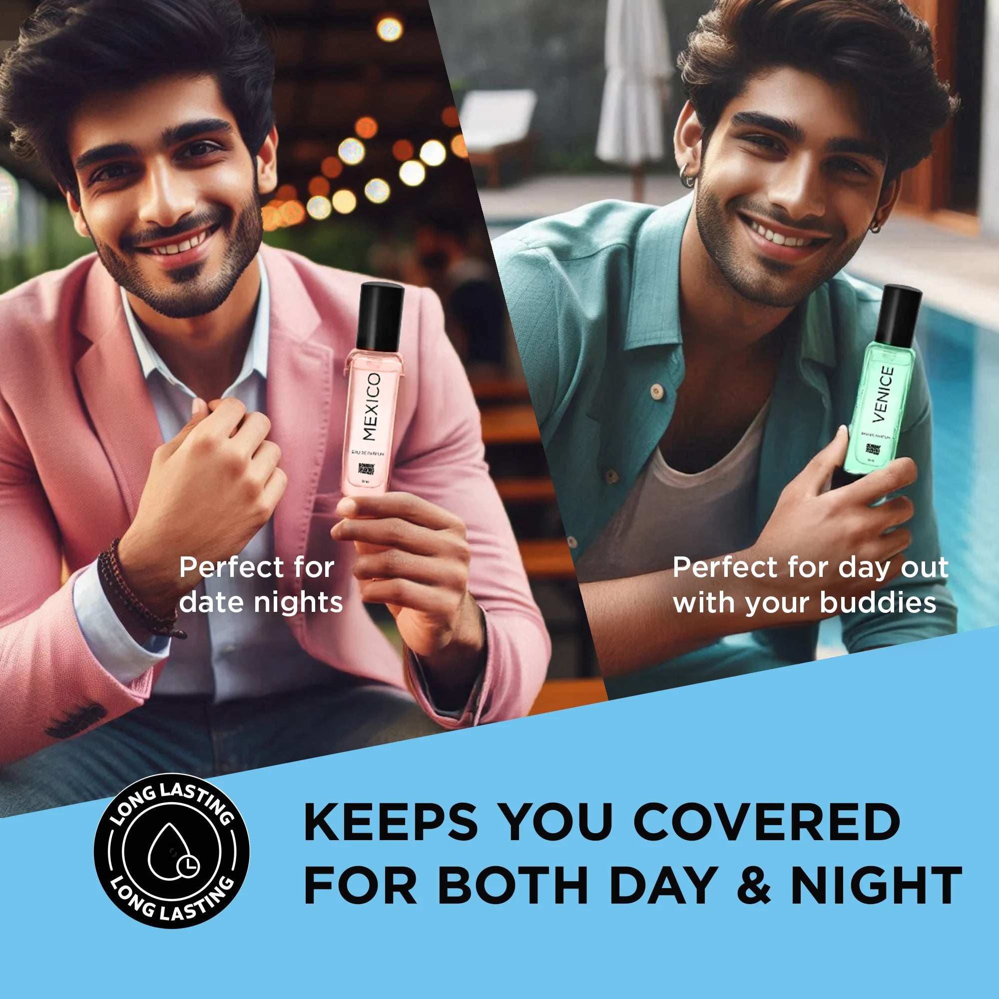 Two Scents in a box: With a duo of long-lasting EDPs – Mexico & Venice – for men who like their scent game bold, balanced, and always in control