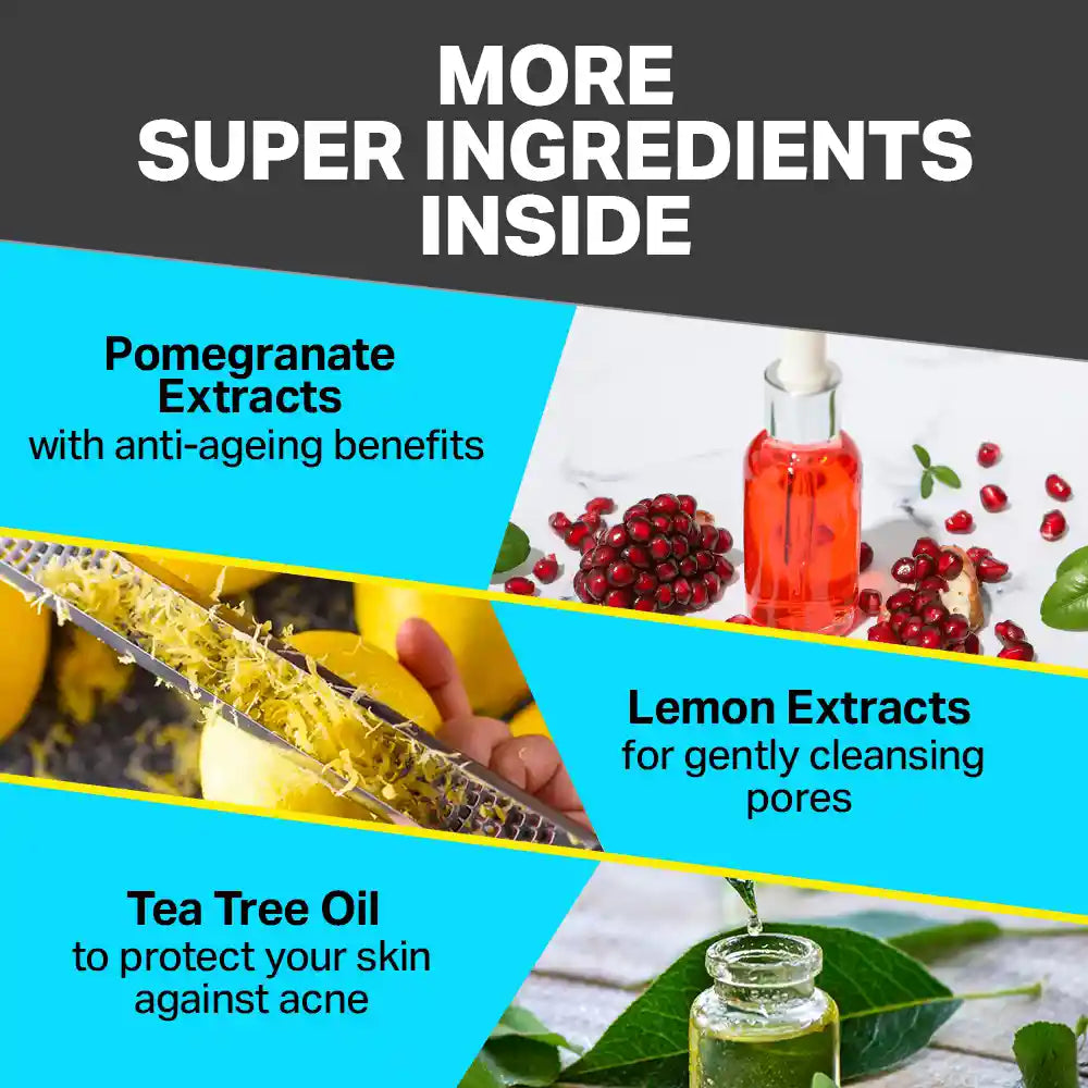 Charcoal Face Wash: 10X cleansing power of Charcoal Face Wash deeply clears dirt, debris and excess oil from the skin