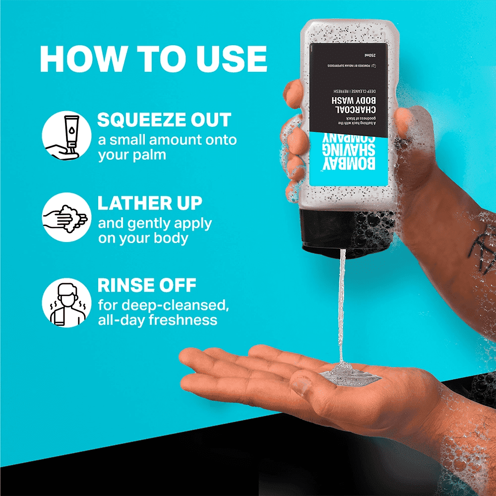 Charcoal Face and Body Wash helps you stay fresh all day long. Charcoal beads help in Deep Cleansing and Exfoliation, Menthol extracts unleash a cooling wave of freshness to invigorate the senses and the restorative Aloe Vera extracts calm and soothe the skin. This has been formulated with active ingredients that provide bacteria control and odour protection for a refreshing and long-lasting after-feel.