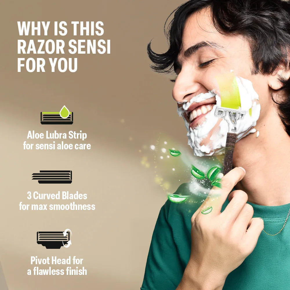 This innovative approach not only repurposes natural waste but also offers a durable, eco-friendly alternative to traditional plastic handles.Equipped with triple curved blades, the Eco Sensi 3 ensures a close and smooth shave, minimizing skin irritation.