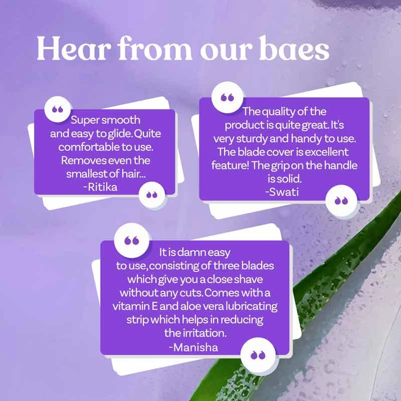 Indulge in an irresistibly smooth shave at home with Bombae's aloe-infused reusable body razor.