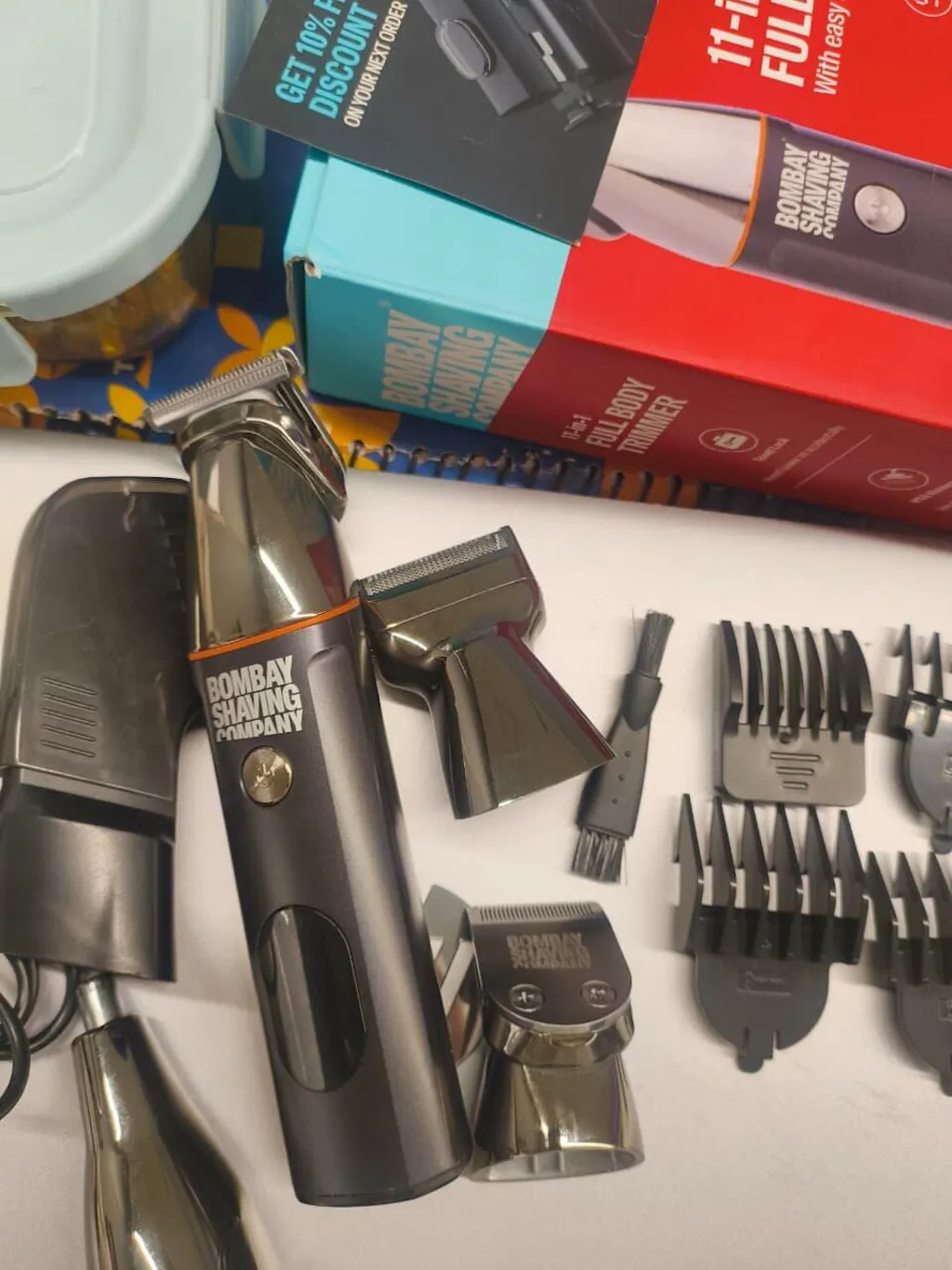 I've been using this Bombay Shaving Company Full Body Trimmer for about a month now and honestly it has exceeded my expectations. The build quality is solid and it feels premium in hand. Comes with so many attachments I use it for beard, body, and nose trimming. The blades are sharp and precise, no tugging or pulling at all. Battery life is great, lasts multiple sessions on a single charge. Cleaning is also super easy. Totally worth the price, would highly recommend to anyone looking for a reliable all-in-one grooming solution!