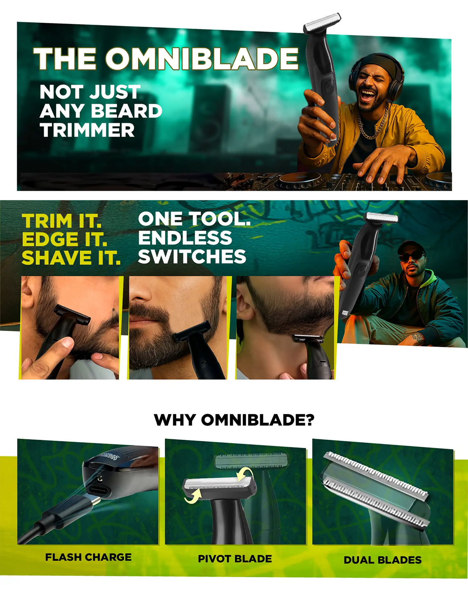 Trim, styler & shave: With a revolutionary trimmer that features one dual blade (back and front) for trimming, creating precise edges and shaving