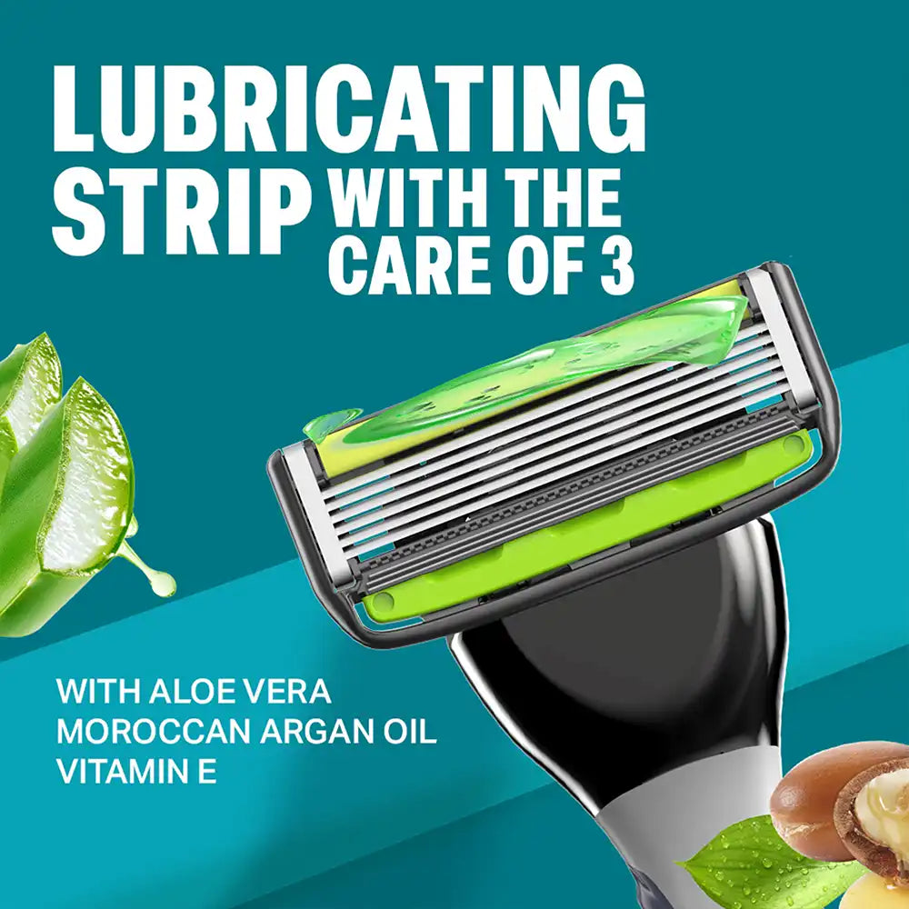 Sensi Flo 6 is the world’s first 6-blade razor, designed for unparalleled close and safe shaves that elevate your shaving routine with a super SENSITIVE approach. The razor features two lubricating strips, made of Moroccan Argan Oil, Aloe Vera and Vitamin E and a pivot head for smooth and skin-conscious glides to deliver an unimaginable level of comfort