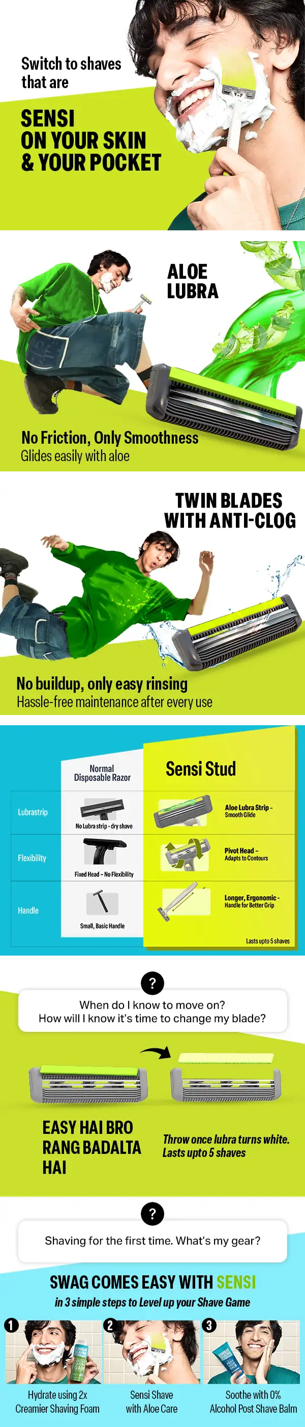 SENSI STUD brings a new revolution to use-and-throw razors, precisely engineered for sensitive skin with a flexible pivoting head that delivers unprecedented manoeuvrability in a disposable design.