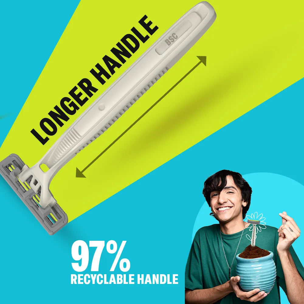 Twin blade technology features an anti-clog system that provides close, hygienic shaves that are both smooth and safe, while the environment-friendly design includes a 97% recyclable handle to support conscious lifestyle choices.