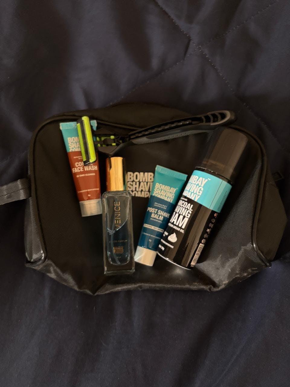 Been using this for about 3 weeks now. The routine is simple to follow and everything fits nicely in the pouch. Coffee face wash is refreshing in the morning. The razor is smooth, no cuts. Post shave balm doesn't leave any sticky feeling which I appreciate. Venice perfume is subtle, office-appropriate. Good purchase overall.